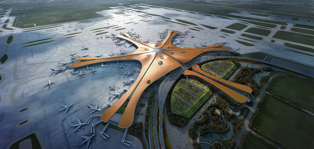 2)造型寓意:“鳳凰展翅”,與首都機場形成“龍鳳呈祥”格局;